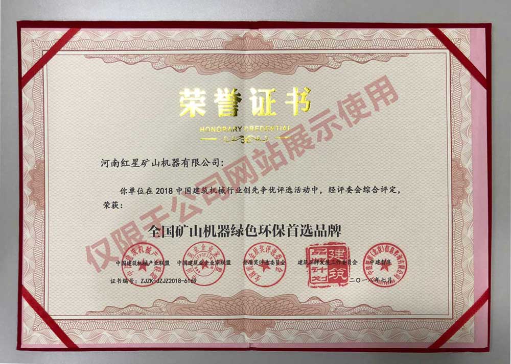 為順應(yīng)綠色礦山時(shí)代發(fā)展需要,結(jié)合客戶實(shí)際現(xiàn)場(chǎng)需求,紅星一直在設(shè)備研發(fā)路上奮進(jìn),被評(píng)為“全國(guó)礦山機(jī)器綠色環(huán)保首選品牌”。查看證書